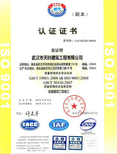 公司名稱:武漢市天時建筑工程有限公司 地址:武漢市江漢區(qū)常青三路98號 電話:027-85610983
