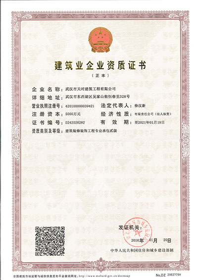 武漢市天時建筑工程有限公司成立于2001年,由武漢市古建筑工藝公司、武漢市直屬房地產公司第三、第四維修隊、武漢市直屬房地產公司材料供應站合并而成,現(xiàn)為武漢城投房產集團有限公司投資的全資子公司國有企業(yè)。